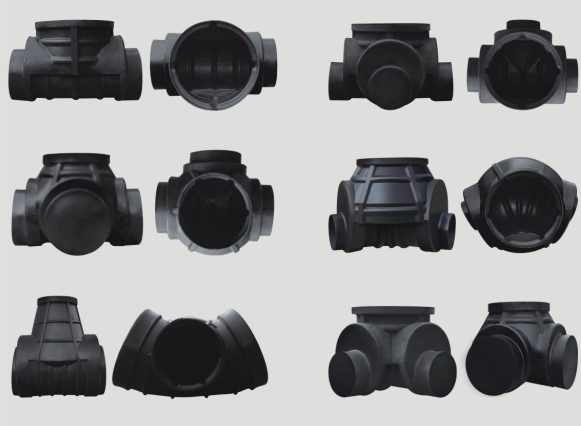 檢查井俗稱“窨井”,由井座、井筒、井蓋或防護(hù)蓋座和檢查井配件組成。一般設(shè)在排水管道交匯處、轉(zhuǎn)彎處、管徑或坡度改變出、跌水處以及直線管段上每隔一定距離處,是便于定期檢查、清潔和疏通管道的排水附屬構(gòu)筑物。其中,關(guān)鍵的井座部分采用一次性注塑成型,以變徑接頭、可變角接頭及密封圈等配件來(lái)達(dá)到改變管徑及角度的連接。檢查井配套開(kāi)發(fā)了注塑成型的井蓋、井筒