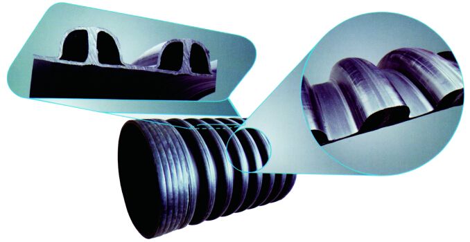 內肋增強聚乙烯(PE)螺旋波紋管管材以高密度聚乙烯(HDPE)為原料,螺旋纏繞成內壁平直光滑,外壁呈波紋狀、波紋中有直立肋筋作為結構支撐,管材具有大的外表面積,形成管土同抗壓。熔接效果好,增強縫的拉伸強度。內肋結構,有利于提高環剛度的穩定性。