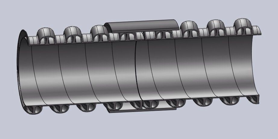 3、抗拉伸強度:內肋管結構比普通管高30%,因此內肋管中空帶材的粘接面較寬,大大增加了縫的拉伸強度,從而使得管材具有更優異的抗橫向拉力;